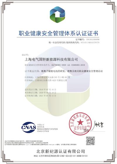 职业健康安全管理体系认证证明